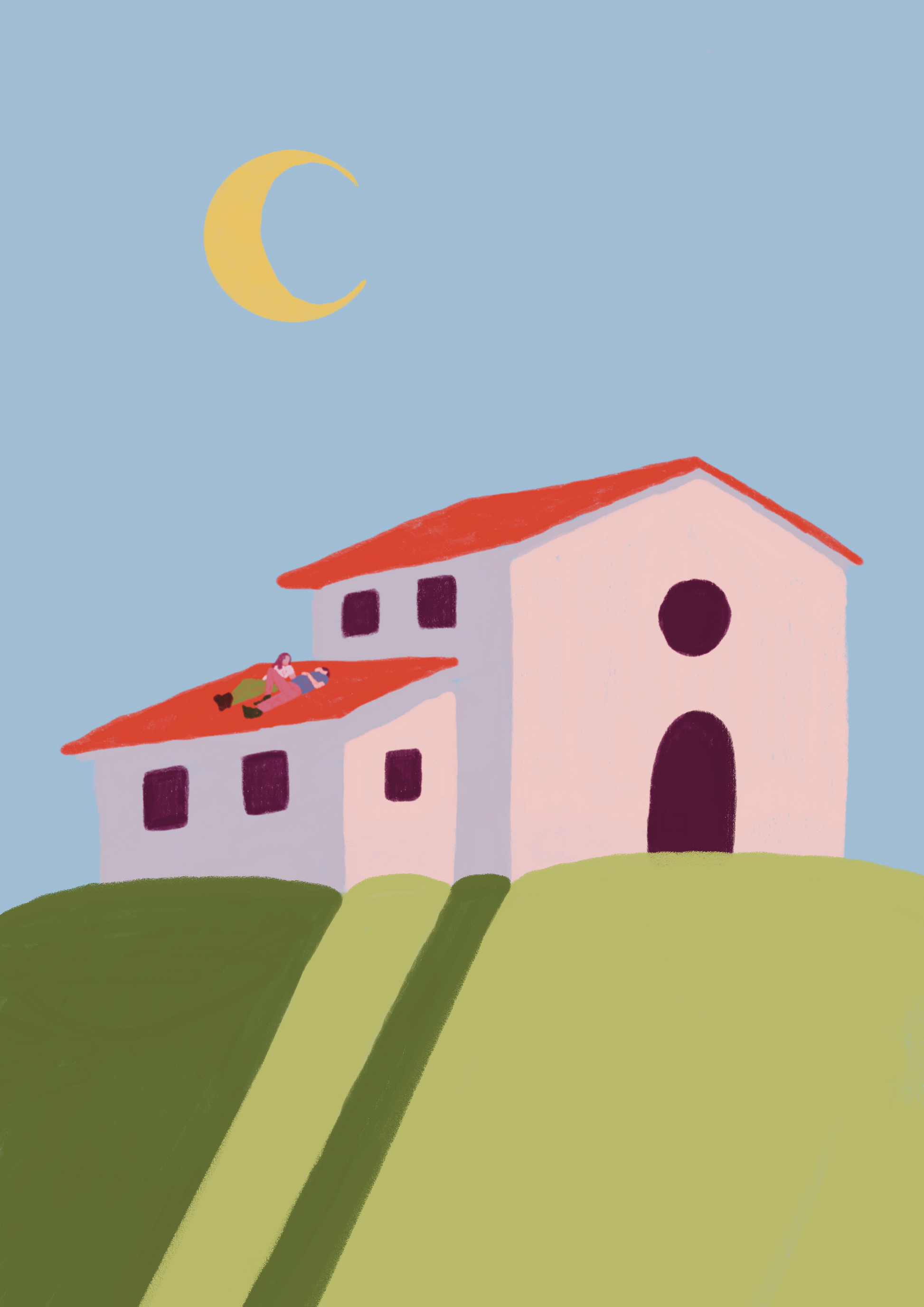 Choose between a 5x7 or A5 print of this original artwork ‘Rooftop Dreamers’